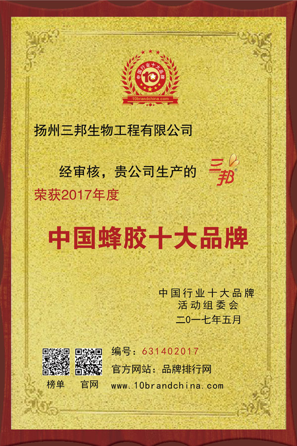 揚(yáng)州三邦生物工程有限公司源于1970年,由原江都蜂乳廠(地方大集體單位)2000年改制重組,是多年從事蜜蜂養(yǎng)殖、蜂產(chǎn)品和食品科研、生產(chǎn)、銷售的全國(guó)蜂產(chǎn)品行業(yè)龍頭…...